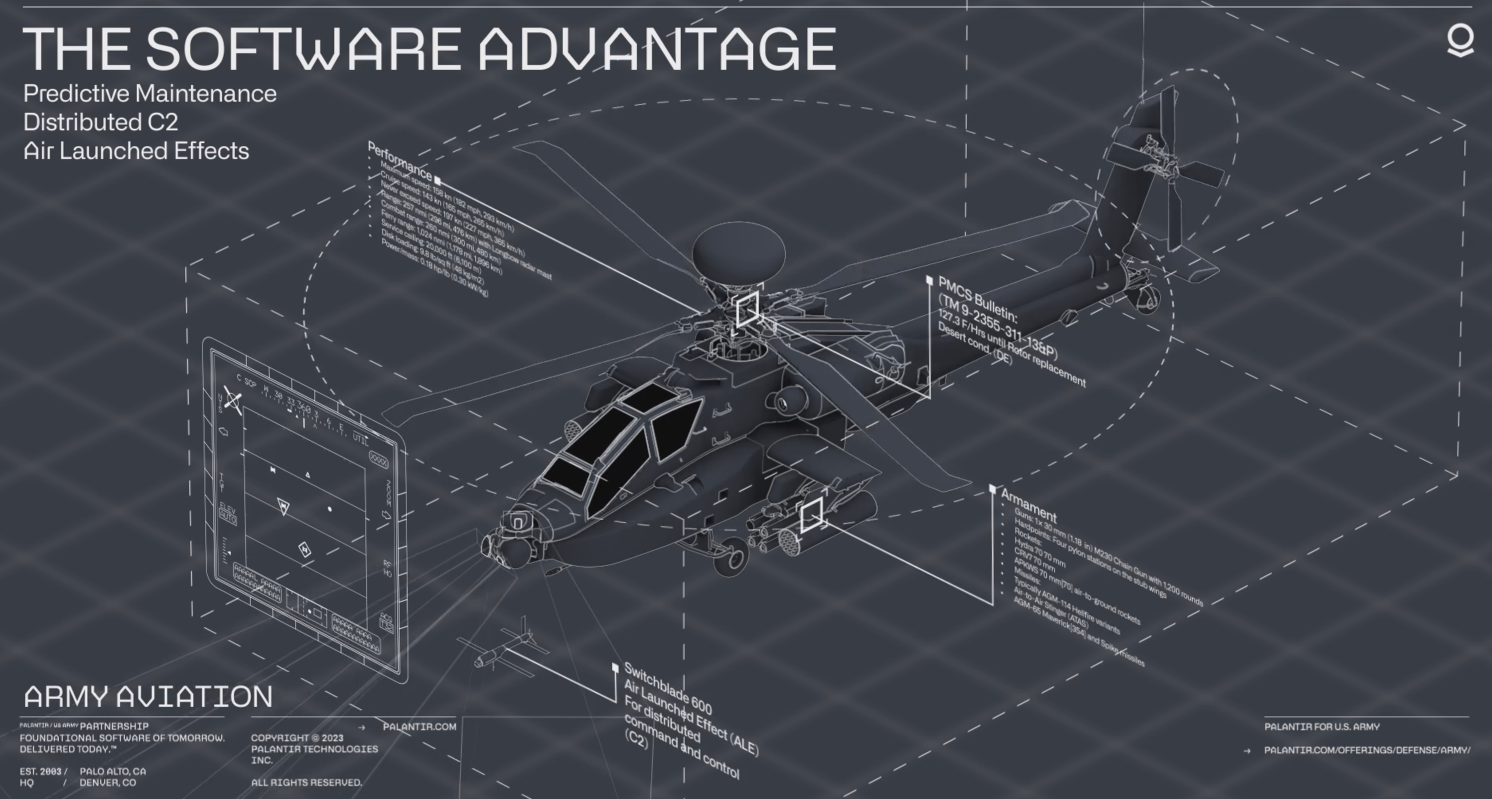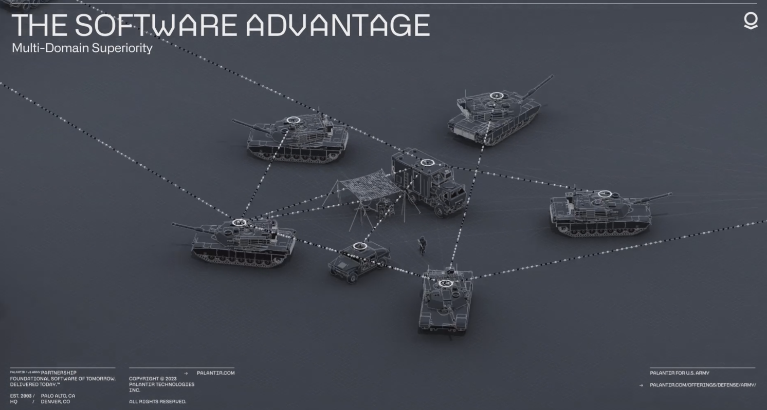 팔란티어의 데이터 분석 솔루션은 전장에 있는 모든 병사, 지휘관, 무기 시스템을 연결하여 실시간으로 데이터를 공유할 수 있도록 지원하며, 이를 통해 신속하고 효율적인 전투 수행이 가능해진다.
