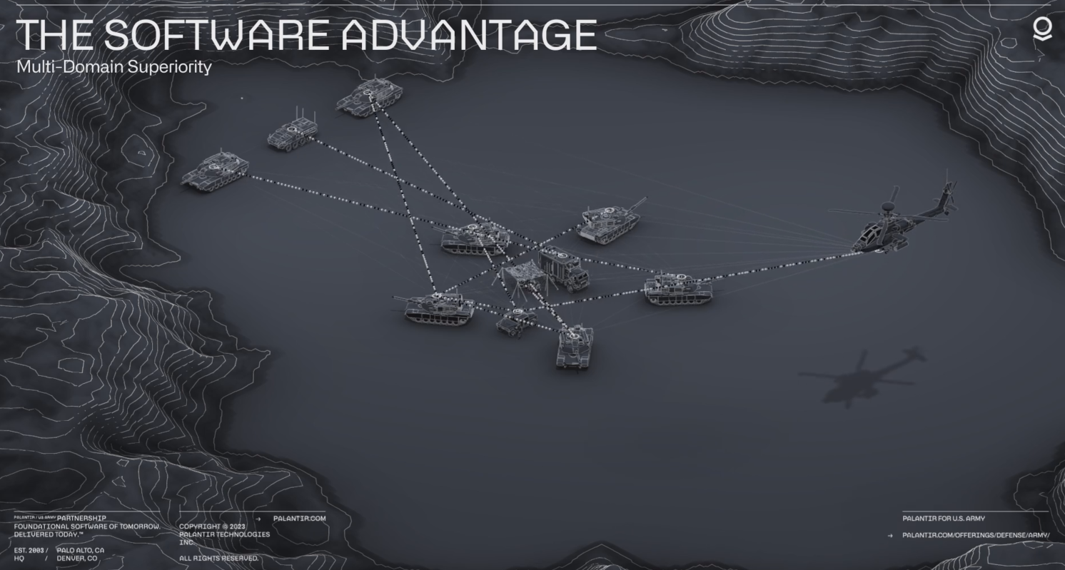 팔란티어는 2008년부터 미 육군과 협력하며 군사 작전의 핵심 소프트웨어를 개발해왔다. 기존 방산 기업들이 하드웨어(전투기, 전차, 미사일 등) 중심의 무기 체계를 구축하는 데 집중했다면, 팔란티어는 AI와 빅데이터 분석을 통해 전장 데이터를 연결하고 활용하는 플랫폼을 구축하는 데 초점을 맞추고 있다.