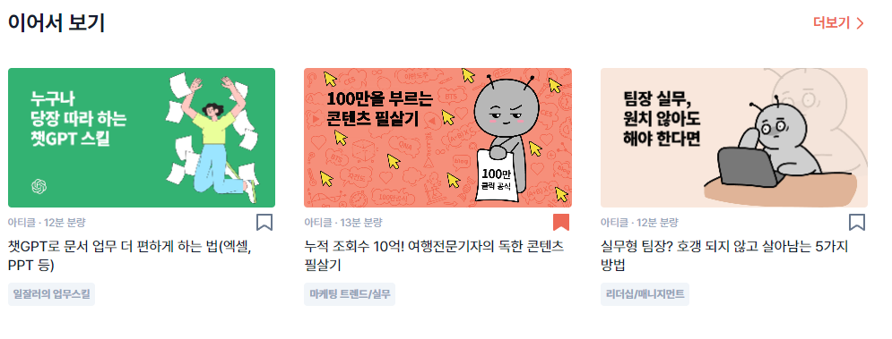 특히, 이전에 봤던, 읽었던 콘텐츠들을 "이어서 보기" 에서 찾아볼 수 있습니다.