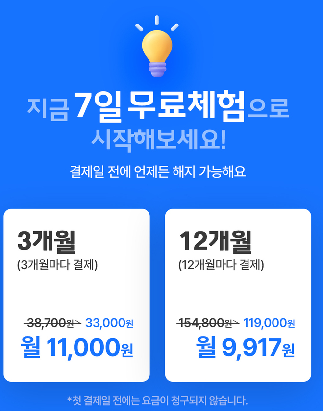 8.18 - 무료 체험 종료,....  결론적으로 12개월 멤버십 (119,000원) 가입했습니다.
