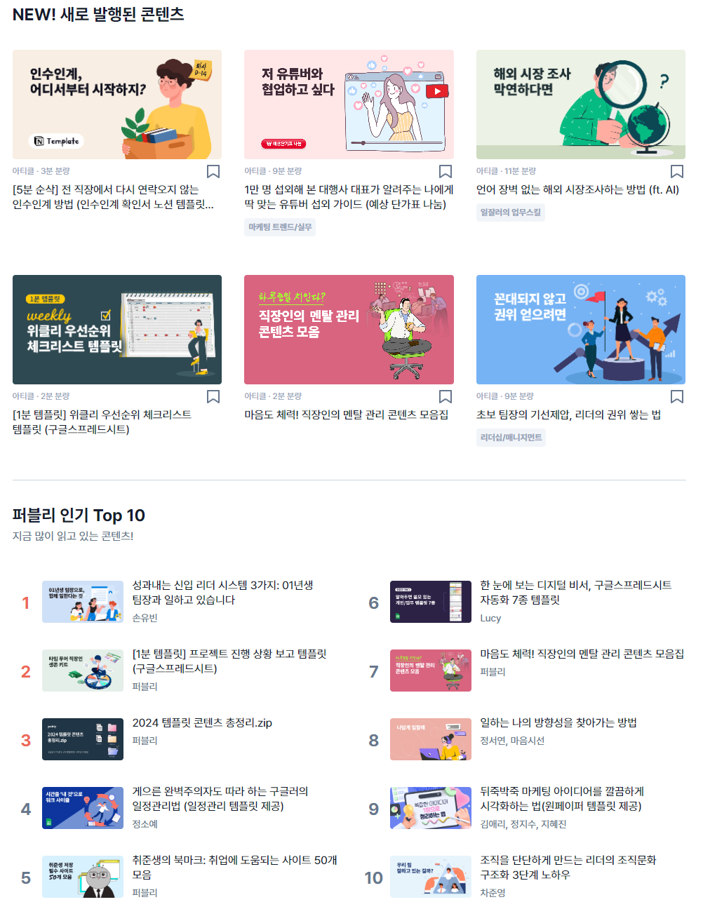 새롭게 발행되는 콘텐츠들을 정리해서 보여줍니다.