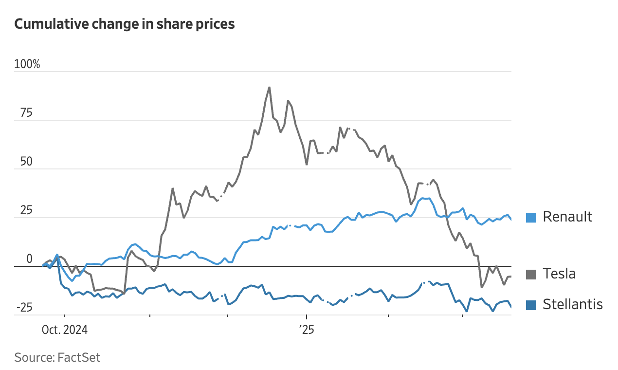 그러나 지금, 그 꿈은 다시 시험대에 올랐습니다. 테슬라는 최근 몇 달 사이 급격한 주가 하락과 유럽 시장에서의 판매 부진이라는 신호를 받았고, 거대 브랜드 연합을 통해 시장을 장악하려던 스텔란티스도 브랜드 정체성과 수익성 사이에서 갈피를 잡지 못하고 있습니다.