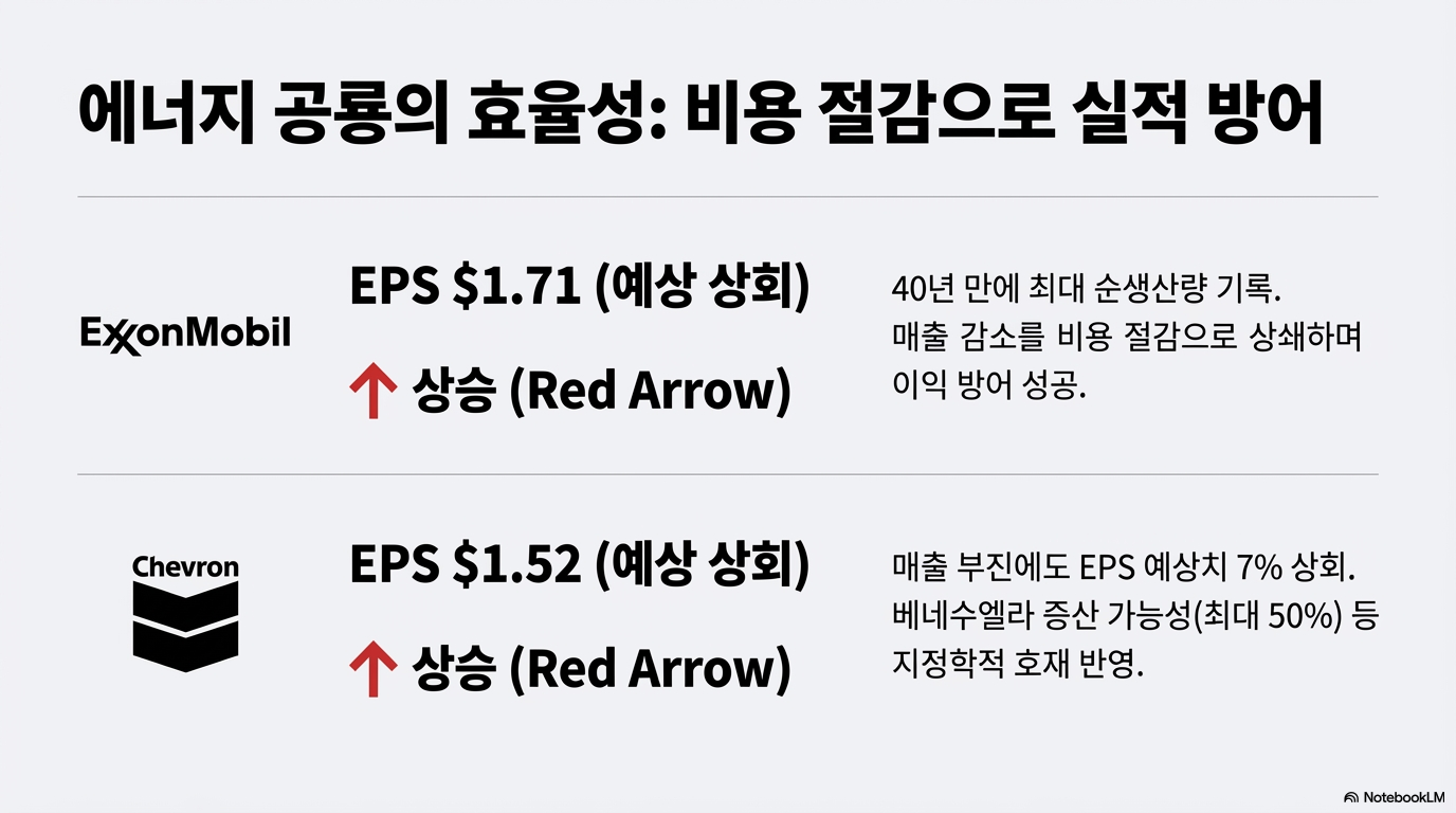 견고한 실적을 발표하고도 주가가 하락하는 역설적인 상황도 연출되었습니다. 이는 시장의 '기대치'가 얼마나 중요한지를 명확히 보여줍니다.