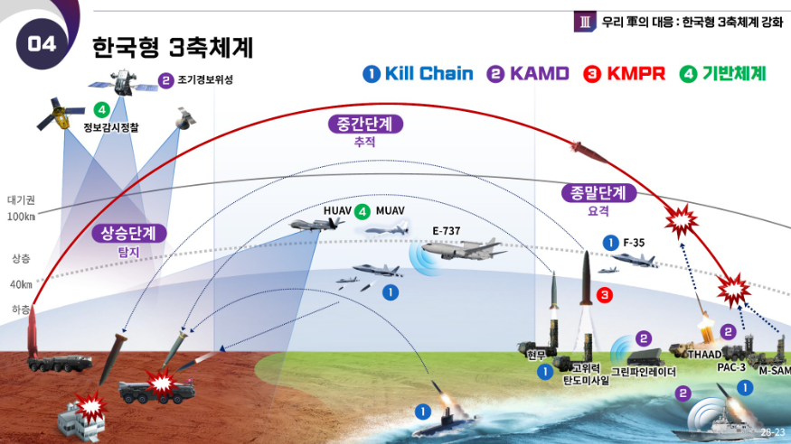- L-SAM 및 중고도 미사일 방어체계: KAMD의 또 다른 중요한 구성 요소는 L-SAM과 같은 고고도 미사일 방어 시스템입니다. 이는 고도에서 발사된 미사일을 요격할 수 있는 시스템으로, THAAD(고고도 미사일 방어 체계)와 함께 다층 방어 체계를 구축하는 데 중요한 역할을 합니다.