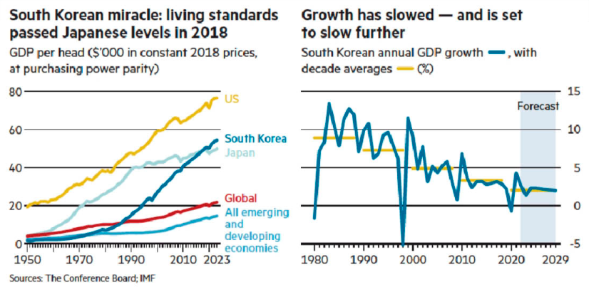 - 제조업 중심의 경제 구조가 새로운 경제 모델로의 전환을 어렵게 하고 있습니다. 한강의 기적이라고 불리우는 과거의 경제 성장은 이제 새로운 사회적, 인구적 도전에 직면해 있습니다.
