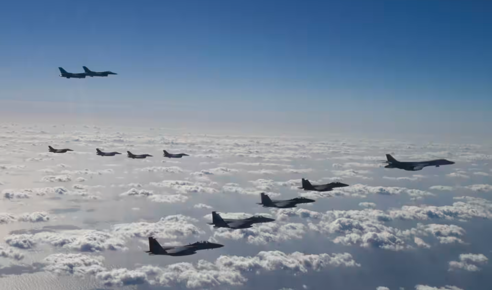 북한의 ICBM 시험 발사에 대응하기 위해 한국, 미국, 일본은 한반도 인근에서 합동 공중 훈련을 실시했습니다. 이 훈련에는 미국의 장거리 폭격기 B-1B가 투입되었으며, 한국과 일본의 전투기들이 함께 참여해 공중에서의 유기적인 협력과 대응 태세를 선보였습니다. 특히, 이번 훈련은 북한의 미사일 위협에 대한 강력한 억지력을 보여주는 중요한 군사적 메시지로 평가됩니다. 한국 합동참모본부는 이번 훈련이 3국의 단결된 군사력을 과시하는 동시에, 북한의 도발에 신속히 대응할 수 있는 실전 대응 능력을 강화하기 위한 것이라고 밝혔습니다.