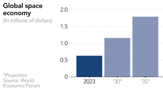 세계경제포럼은 2035년까지 우주 경제가 1.8조 달러로 삼중할 것이라고 예측합니다. 호주는 이 성장의 일환이 되기를 희망하며, 2018년에 호주 우주국을 설립하여 2030년까지 자국의 우주 부문을 120억 달러로 삼중하고 20,000개의 일자리를 창출하는 임무를 가지고 있습니다.