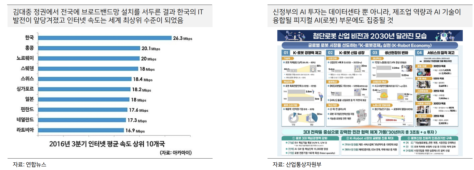 이 흐름은 김대중 정부가 1990년대 말 전국에 초고속 인터넷망을 깐 전략과 유사합니다.