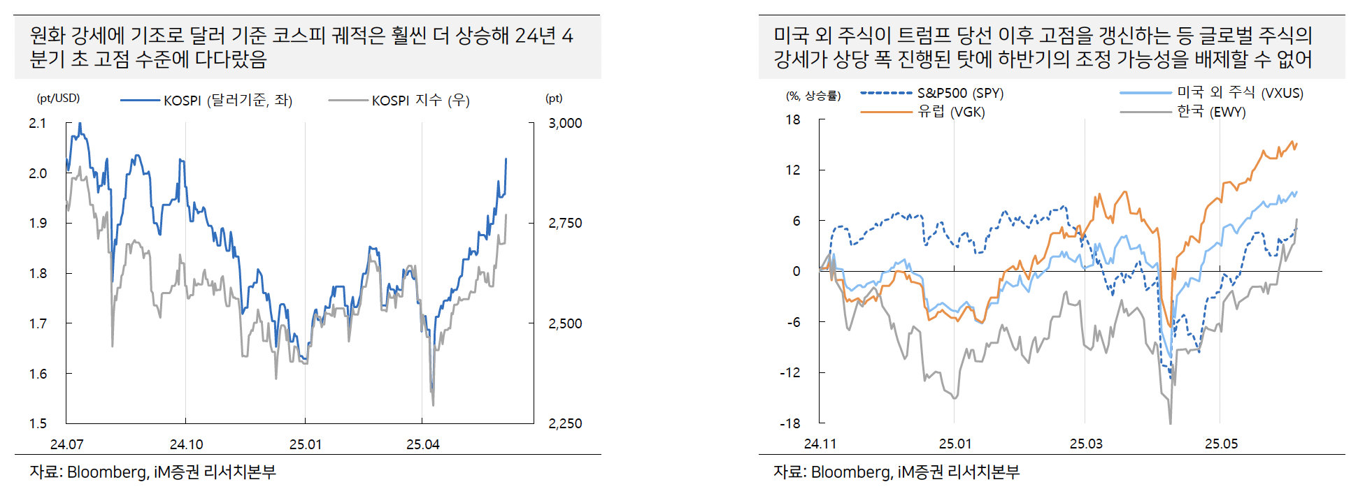 - 정책 기대감, 원화 강세, 외국인 유입 등은 이미 상당 부분 KOSPI 2,700선에 반영됨