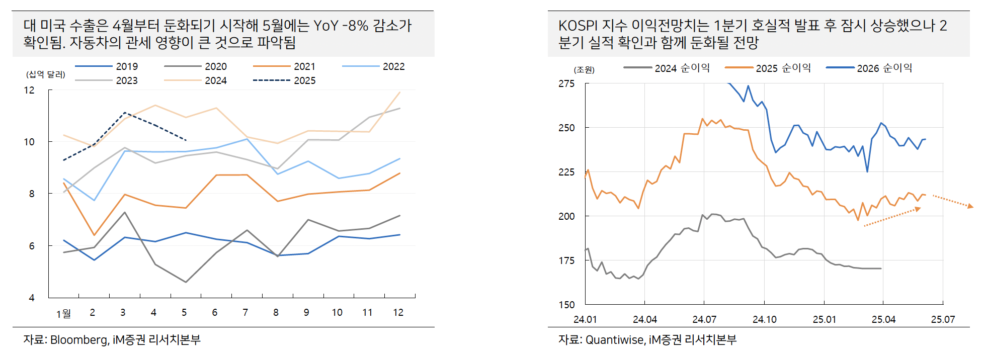 - 반면, 미국 수출 감소와 기업 실적 하향 조정은 이제 시작