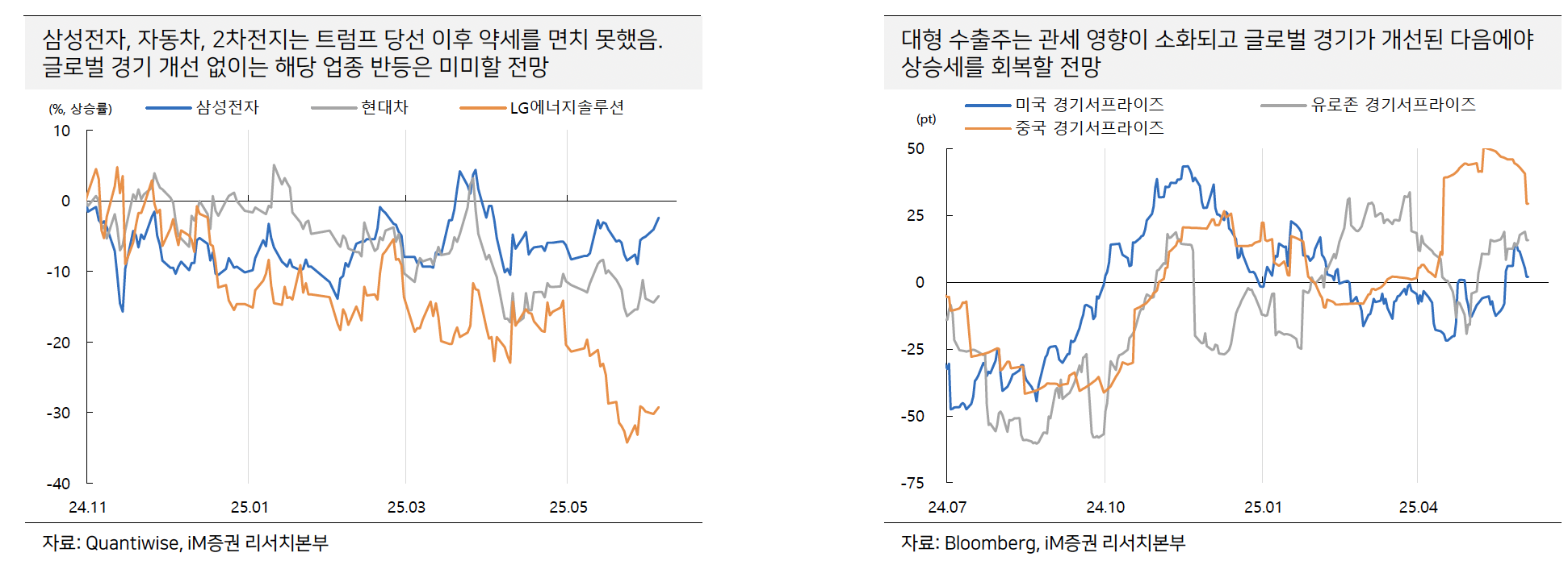 - 반면, 미국 수출 감소와 기업 실적 하향 조정은 이제 시작
