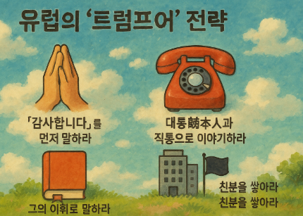 트럼프는 협상을 거래로만 보지 않고, **“누가 내 편인가”**라는 감정적 기준을 중시합니다. 따라서 유럽 외교의 과제는 정책적 논리와 더불어 개인적 호감·친근감을 확보하는 것입니다. 이는 전통적 외교 문법으로 보면 다소 비공식적이지만, 트럼프 시대에는 매우 효과적인 전략입니다.