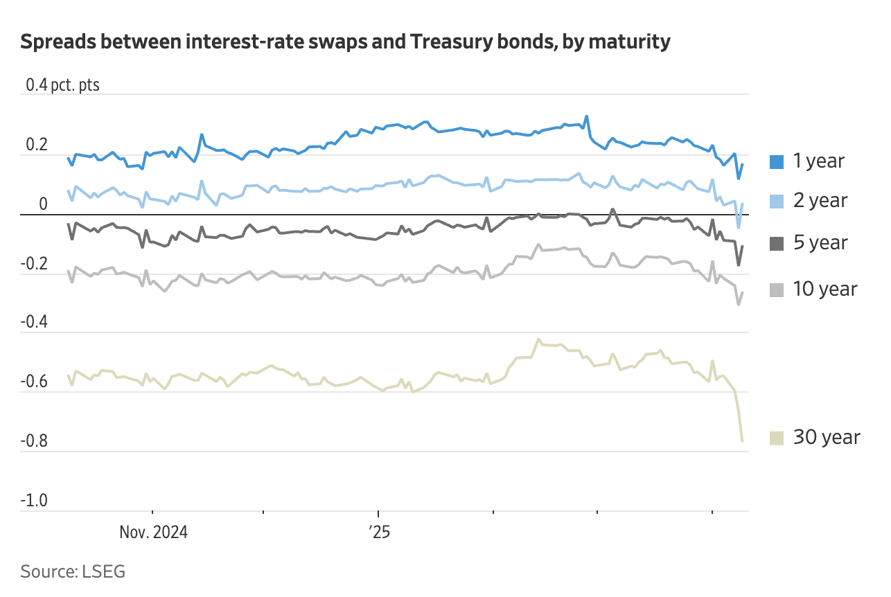 실제로 이번에도 스왑 스프레드가 갑자기 벌어졌다는 점에서, 이러한 거래가 시장 혼란의 배경에 있었을 가능성이 큽니다. 특히 금융 규제 강화 이후, 딜러 은행들이 채권을 충분히 받아줄 여력이 부족해졌다는 점이 문제를 키우고 있습니다.