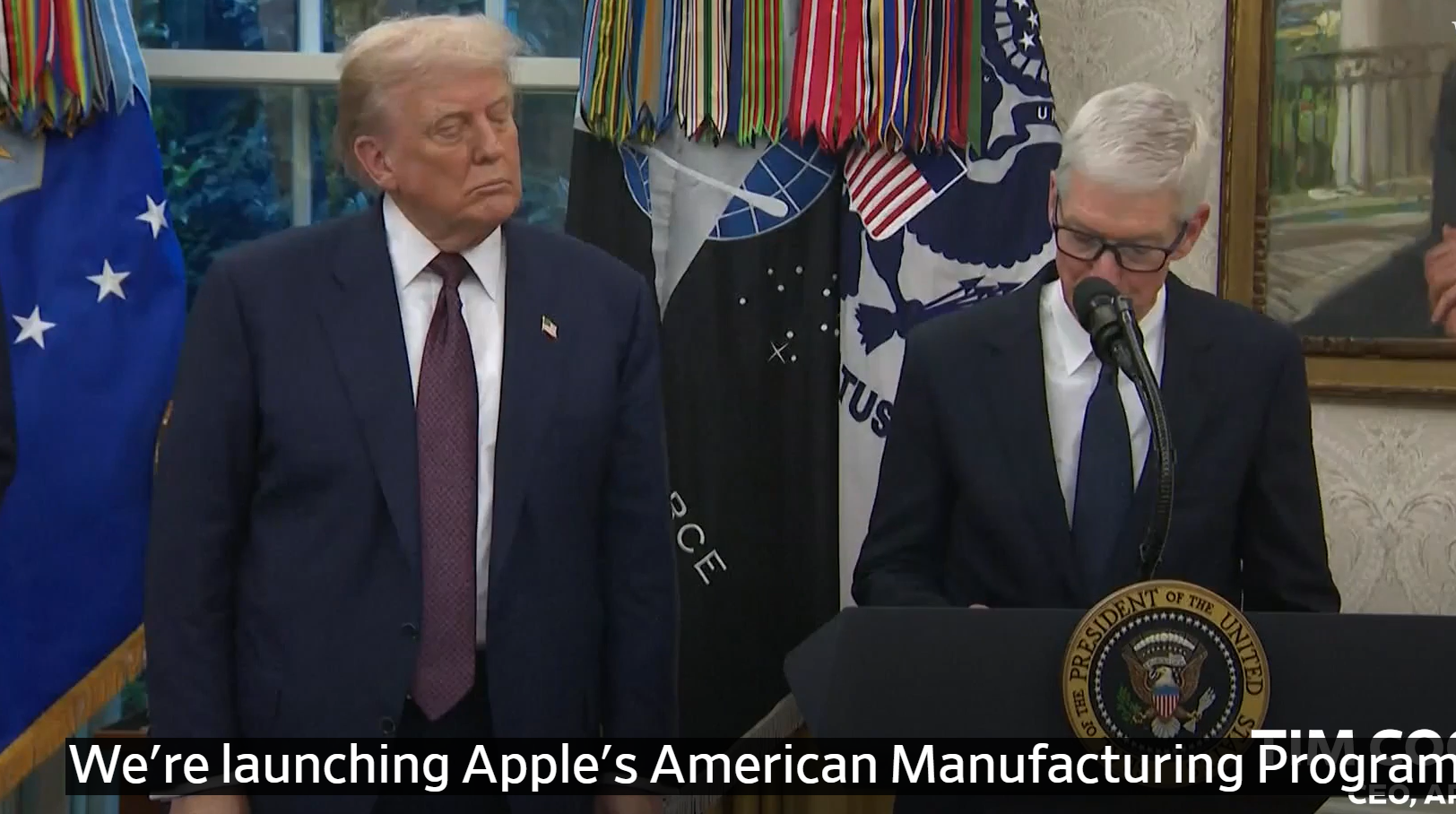 애플 CEO 팀 쿡(Tim Cook)은 이번 발표 현장에서 트럼프에게 미국산 유리로 만든 황금받침 플라크를 선물하며 협력 의지를 과시했습니다. 그는 “아이폰과 애플워치에 들어가는 유리를 미국 켄터키주에서 생산할 것”이라며 2.5억 달러 규모의 코닝(Corning) 투자를 공개했습니다.