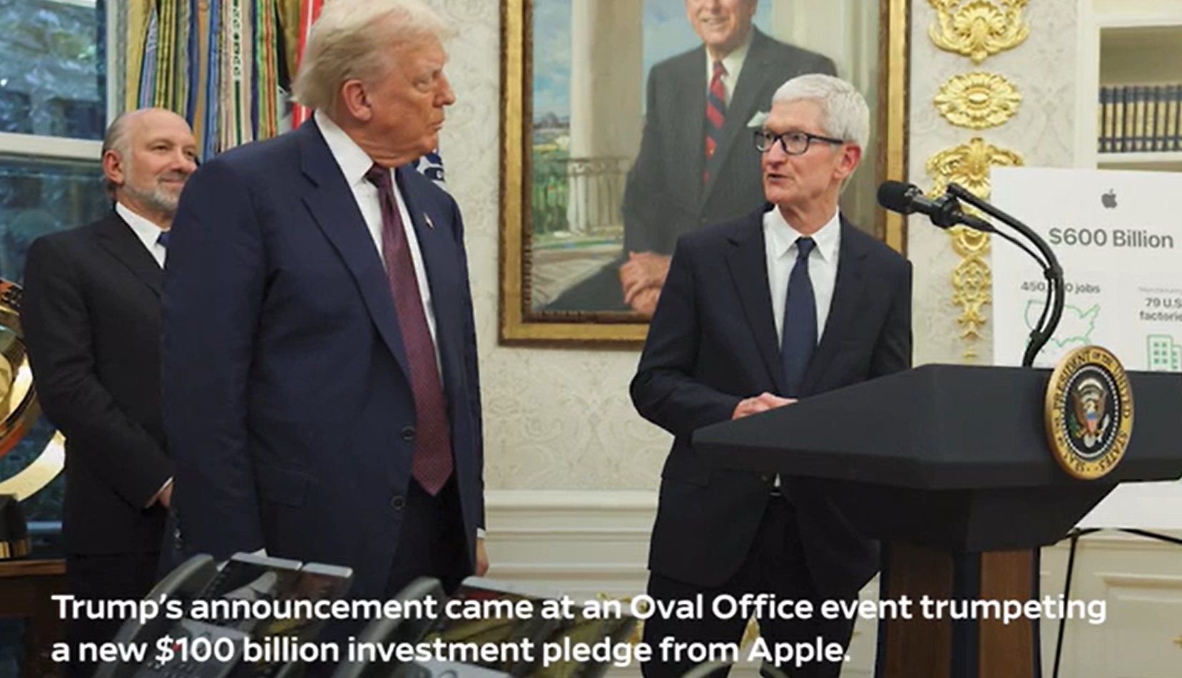 이번 발표 현장에서 팀 쿡은 트럼프에게 **“전량 미국산 유리로 만든 황금 받침대의 기념 플라크”**를 직접 선물하며 상징적 제스처를 취했습니다. 이는 단순한 선물이 아닌, 정치적 우호를 형성하는 장치이자 기업 이미지 관리의 일환이기도 합니다.