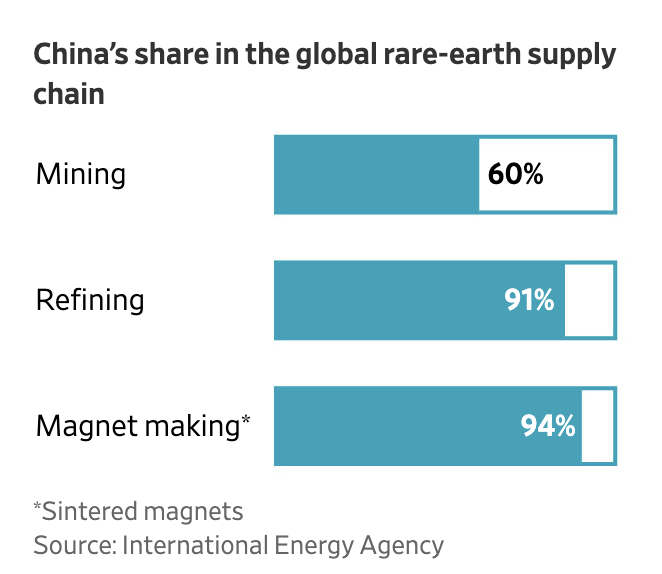2024년, 중국은 자석 수출에 군사 목적 사용이 없다는 인증 절차를 요구하기 시작했고, 이로 인해 포드 SUV 공장은 멈춰섰습니다. 한 부품 업체는 40센트짜리 자석을 15달러에 구매하는 사태까지 벌어졌습니다.