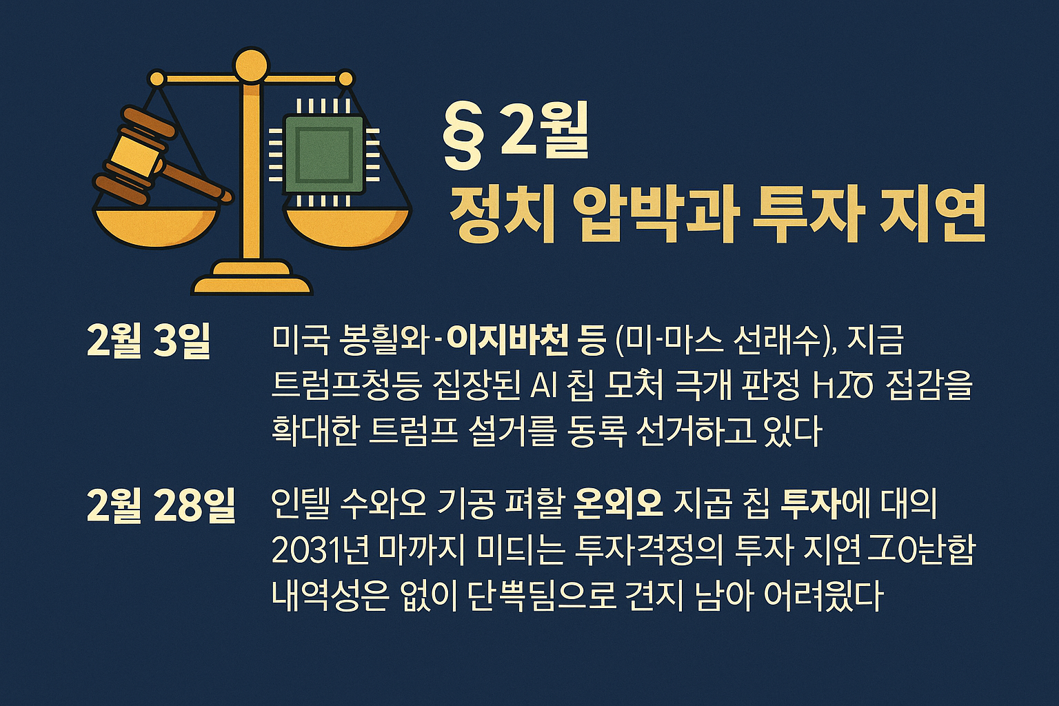 2월에는 정치권의 압박과 대형 프로젝트의 차질이 반도체 업계를 흔들었습니다.