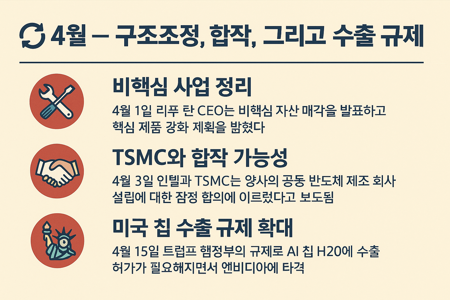 🔄 4월 – 구조조정, 합작, 그리고 수출 규제