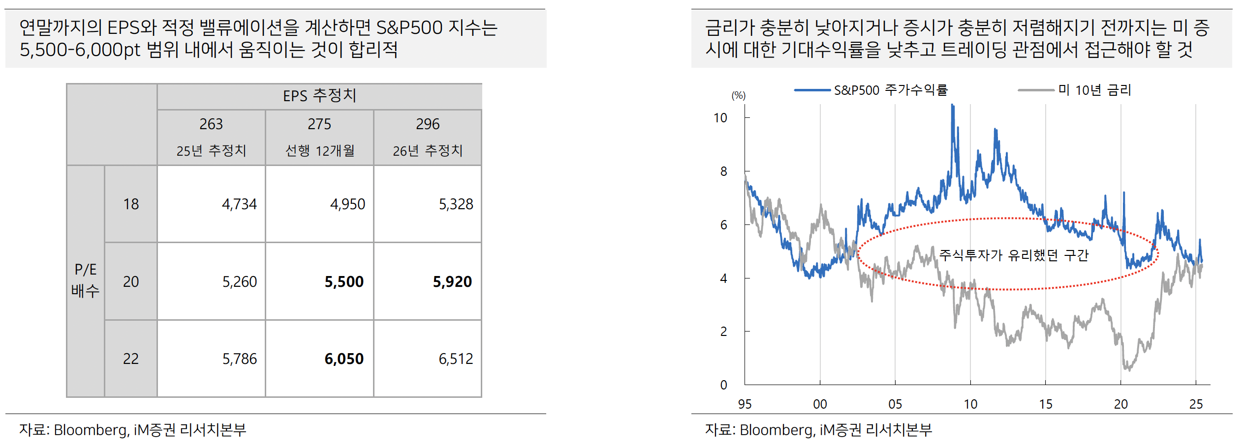 iM증권은 2025년 하반기 S&P500의 예상 밴드를 5,500~6,000pt로 제시합니다.