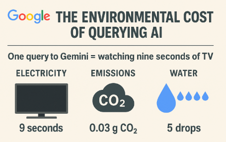 - Gemini에 단순 텍스트 질문 1회를 할 때 소비되는 에너지는 TV를 9초 동안 보는 것과 동일