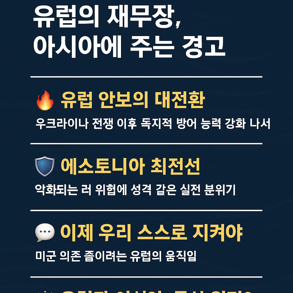 유럽의 재무장은 단지 안보 정책의 재설정이 아니라, 미국 주도의 질서가 흔들릴 수 있다는 전조이며, 동시에 전 세계 동맹국들에게 던지는 거울과도 같은 메시지입니다.