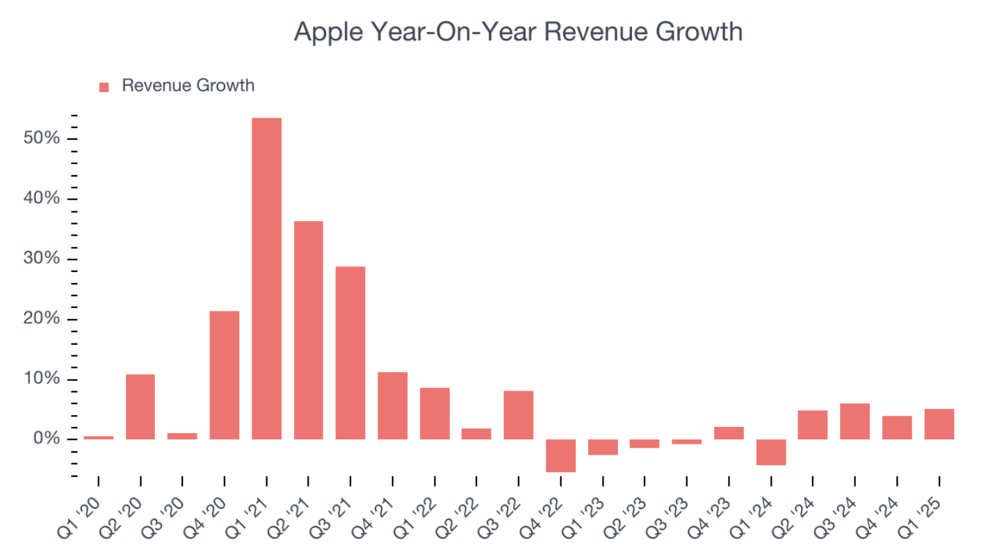 애플의 전체 매출 중 74.5%를 차지하는 제품 부문은 최근 2년간 연평균 –1.1%로 하락했으나, 이번 분기에는 전년 대비 2.7% 성장하며 반등 조짐을 보였습니다. Apple Intelligence와 iOS 18이 본격적으로 사용되기 시작하면 하드웨어 업그레이드 수요가 다시 촉진될 가능성이 있습니다.