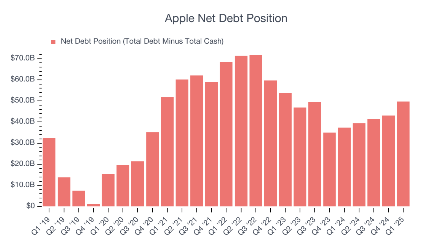 또한 애플은 막대한 현금을 보유하고 있습니다. 2025년 1분기 기준으로 현금 485억 달러, 부채 981억 달러를 보유하고 있으며, 순부채/EBITDA 비율은 단 0.3배에 불과합니다. 연간 이자 비용이 29억 달러에 불과해 이익에 큰 부담을 주지 않고 있으며, 이는 향후 기술 투자, 인수합병, 자사주 매입, 배당 확대 등 다양한 재무 전략을 유연하게 펼칠 수 있는 기반이 됩니다.