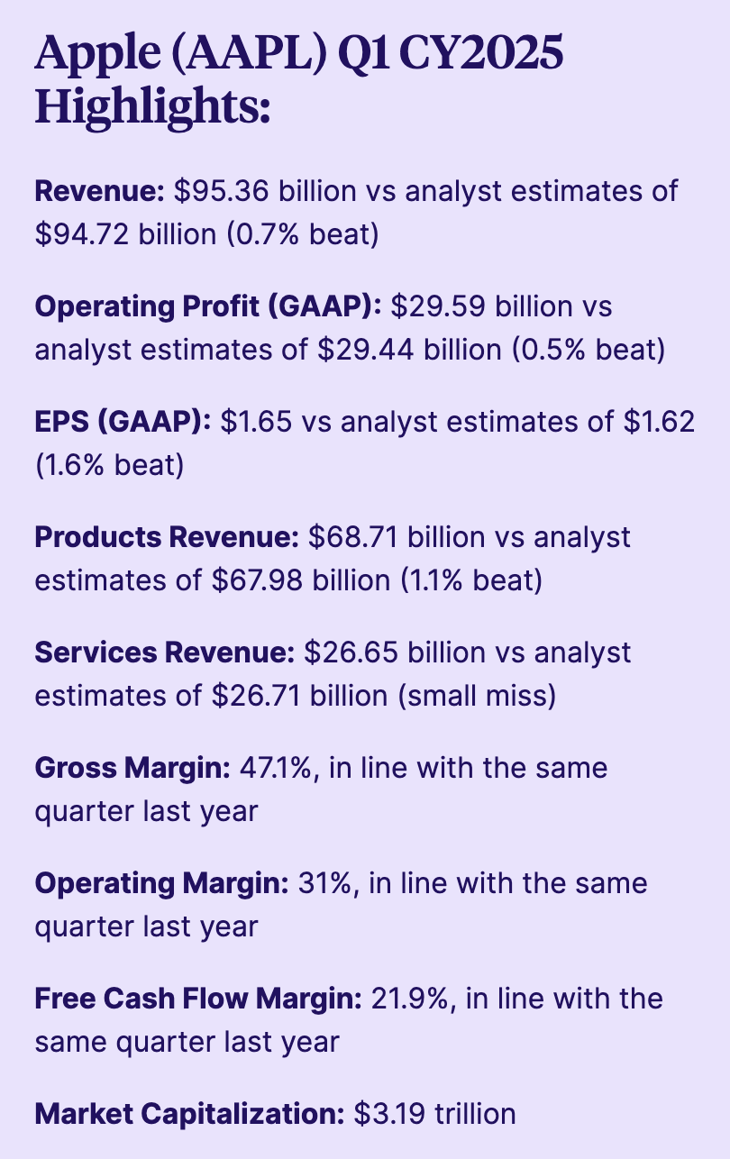 결론적으로, 이번 분기 실적은 과거처럼 폭발적인 성장은 아니지만, AI 전환기를 준비하는 과정에서 건실한 체력을 보여준 분기로 평가할 수 있습니다. 시장 기대치를 소폭 상회하며 애플이 여전히 ‘버티는 힘’을 가진 기업임을 증명해 보인 셈입니다.