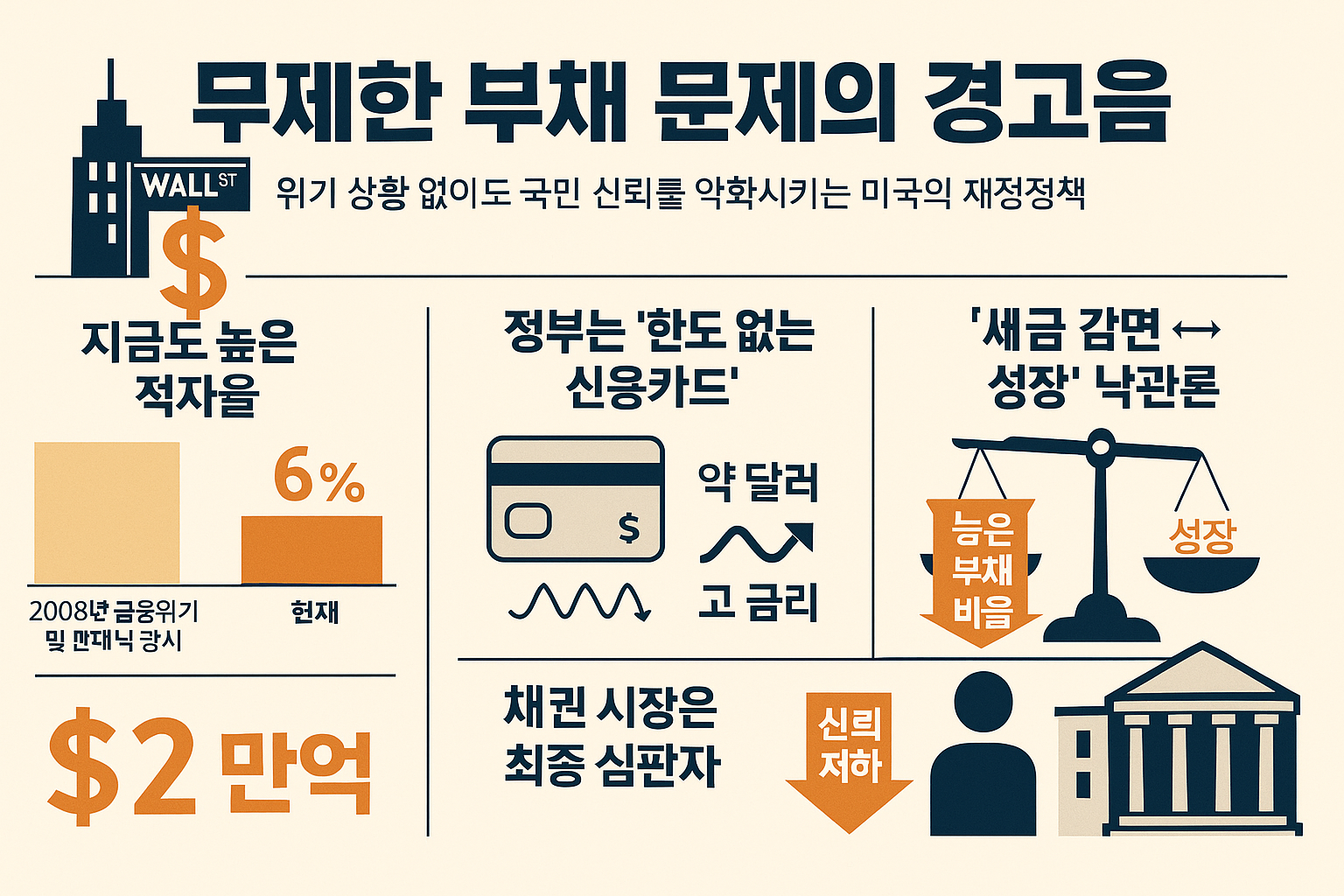 투자자와 국민이 믿는 것은 단순한 수치 이상의 ‘책임 있는 정책’입니다. 무제한 신용카드를 쥔 10대가 아니라, 위기에 대비할 수 있는 준비된 어른 같은 재정 운영이 필요할 때입니다.