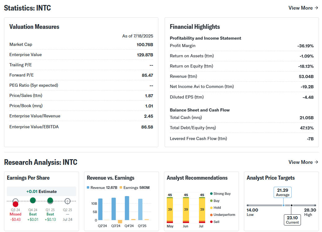 인텔은 현재 약 90억 달러의 현금을 보유하고 있고, 전 세계에 걸친 생산 인프라와 1,000억 달러 이상의 제조 설비 자산을 가지고 있습니다. 또한 비용 절감을 위해 부서 축소와 사업 매각도 병행하고 있죠.