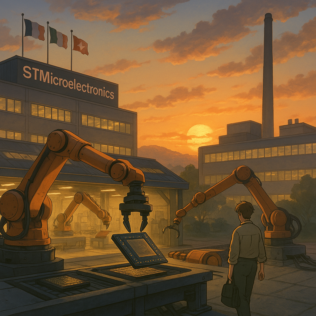 ST마이크로일렉트로닉스는 1987년, 이탈리아의 SGS 마이크로일렉트로니카프랑스의 톰슨 세미컨덕터의 민간 및 비군사 분야 반도체 사업이 합병되며 탄생했습니다. 두 나라 정부가 공동으로 주도한 유럽 반도체 통합 프로젝트의 산물로, 유럽 기술 주권의 상징과도 같은 기업입니다.