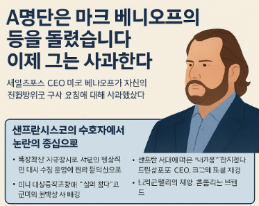 그는 여전히 세일즈포스 타워의 꼭대기에서 도시를 내려다보는 거인이지만, 이번 논란은 그가 다시 “어디에 서야 하는가” 를 묻는 계기가 되었다. 샌프란시스코는 여전히 변화를 요구한다.
