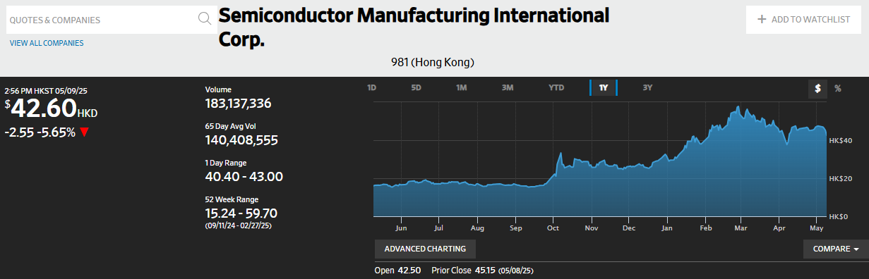 올해 들어 SMIC의 홍콩 상장 주가는 42% 상승하며 **항셍지수의 상승률(14%)**을 크게 웃돌았습니다.