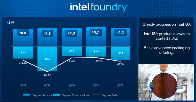 2021년 팻 겔싱어 전 CEO가 시작한 파운드리 사업(제3자 위탁생산)은 TSMC와 경쟁하기 위한 전략이었지만, 지금까지 뚜렷한 고객 확보에 실패했습니다. 아마존과 마이크로소프트와의 협업 소식이 있었지만 여전히 ‘최대 고객’은 인텔 자신입니다.
