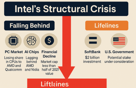 결국 인텔의 진짜 위기는 ‘돈이 없는 것’이 아니라 ‘혁신이 멈춘 것’입니다. 외부의 구명줄은 단기적 유동성을 보장할 수 있지만, 스스로의 기술적 역량과 시장 신뢰를 회복하지 못한다면, 인텔은 과거의 영광만 남긴 채 점점 더 몰락의 길로 들어설 수 있습니다. 다시 말해, 인텔의 미래는 외부 지원이 아니라 내부 혁신에 의해 결정될 것입니다.