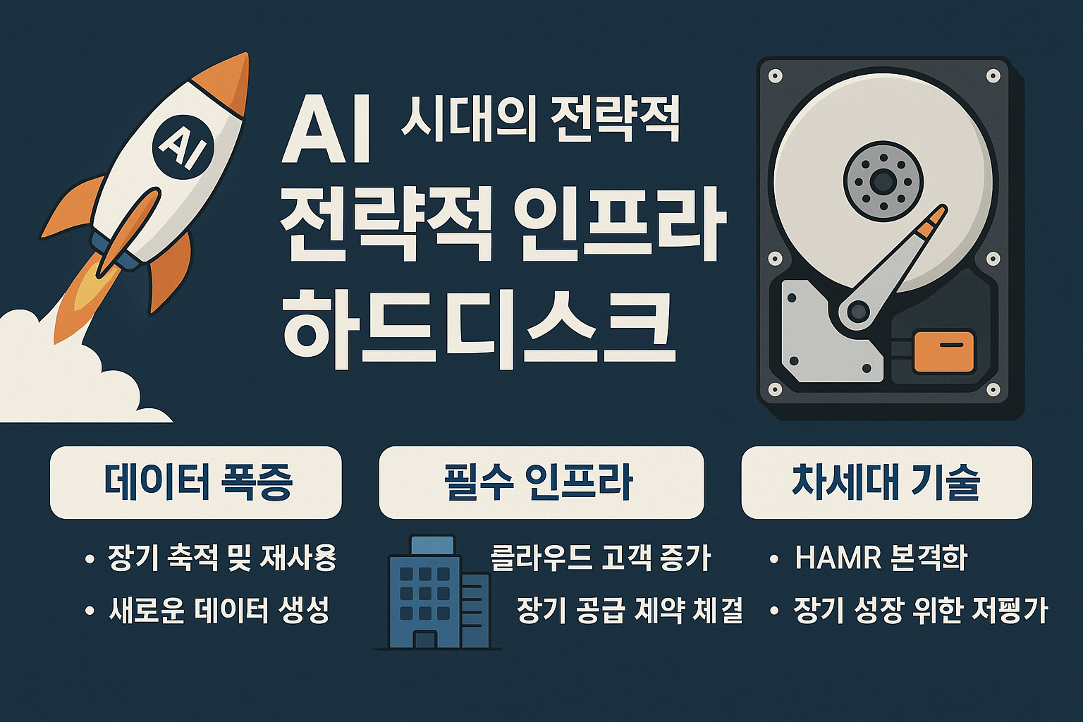 결국, AI 시대의 승자는 GPU나 클라우드 기업만이 아닙니다. **“AI는 데이터를 필요로 하고, 데이터는 저장 공간을 필요로 한다”**는 단순한 진리가 하드디스크를 다시 무대 중앙으로 끌어올리고 있습니다. 눈에 잘 띄지 않지만 반드시 필요한, ‘묵직한 조연’이자 AI 시대의 전략적 인프라로서 HDD의 가치는 앞으로 더 뚜렷해질 것입니다.