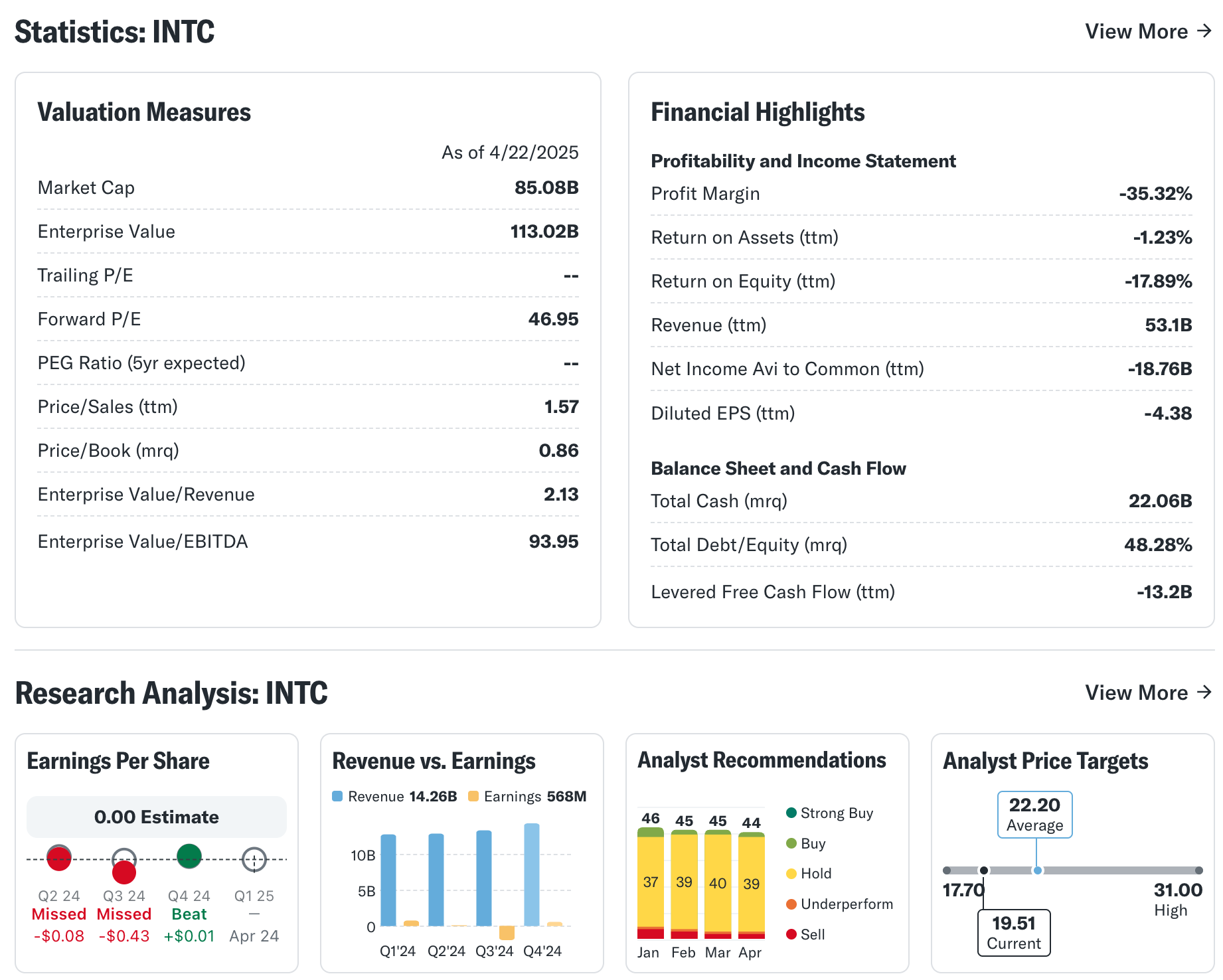 인텔은 한때 세계 반도체의 상징이었지만, 최근 수년간의 실적은 초라합니다. 2024년 한 해에만 주가가 60% 하락했고, 올해 들어서도 소폭 하락세를 면치 못하고 있습니다. 제조 부문에서는 현금이 계속 빠져나가고 있으며, 주요 제품군의 시장 점유율은 AMD에게 밀리며 지속적으로 하락 중입니다.