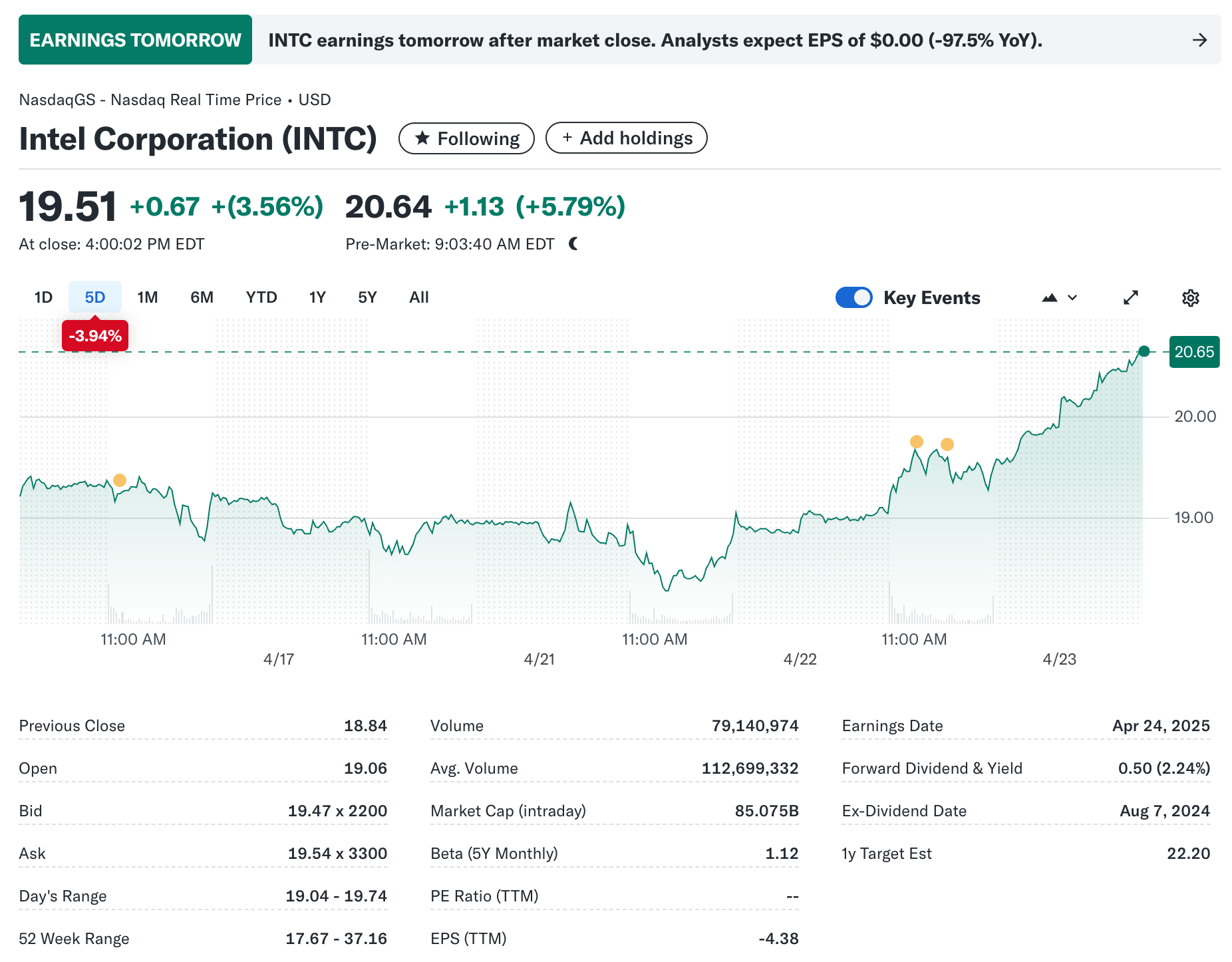미국 반도체 기업 인텔(Intel)이 전체 인력의 20%를 감원할 계획이라는 보도가 전해지자, 주가는 하루 만에 5.6% 급등했습니다. 이는 블룸버그가 현지 시간으로 화요일 저녁에 보도한 내용으로, 정확히 실적 발표 하루 전에 공개돼 시장의 큰 주목을 받았습니다.
