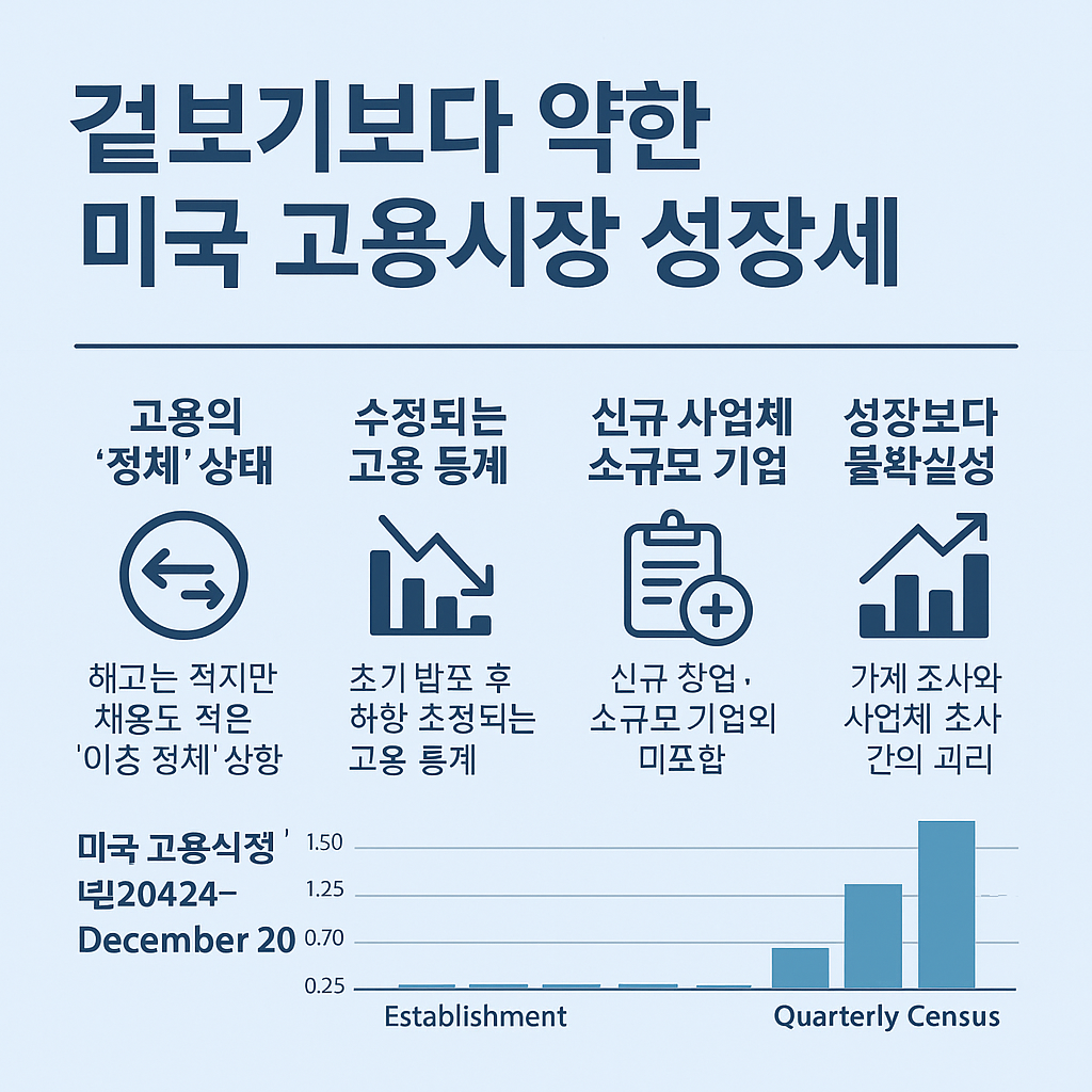미국 고용시장은 지금 '성장'이라는 단어보다 '불확실성'이라는 단어가 더 어울리는 시기를 지나고 있습니다. 매달 발표되는 수치들은 표면적으로 여전히 고용 증가를 보여주지만, 그 배후에는 구조적인 둔화와 신뢰할 수 없는 지표들이 혼재되어 있습니다.