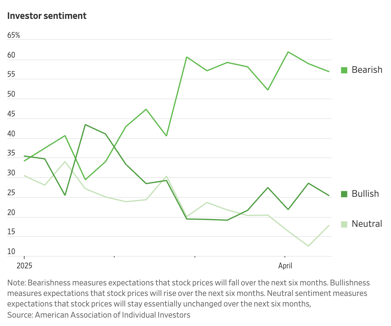 미국 개인투자자협회(AAII)에 따르면, '향후 주가 하락'을 예상하는 비율이 8주 연속 과반을 기록했습니다.