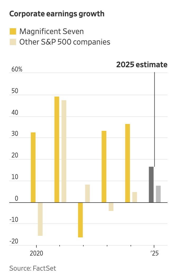 2024년까지 매그니피센트 세븐은 폭발적인 이익 성장률(약 37%)을 기록했지만,