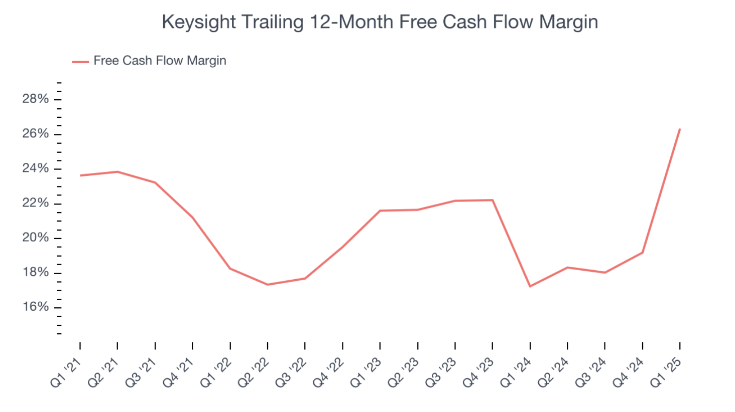 Keysight는 이 측면에서 매우 강력한 모습을 보여주고 있습니다. 최근 1분기 자유현금흐름은 4억 5,700만 달러, 매출 대비 35%에 달하는 자유현금흐름 마진을 기록했습니다. 이는 전년 동기(6.1%) 대비 무려 약 6배 증가한 수치로, 단순 실적을 넘어선 ‘현금 창출력’을 입증한 결과입니다.