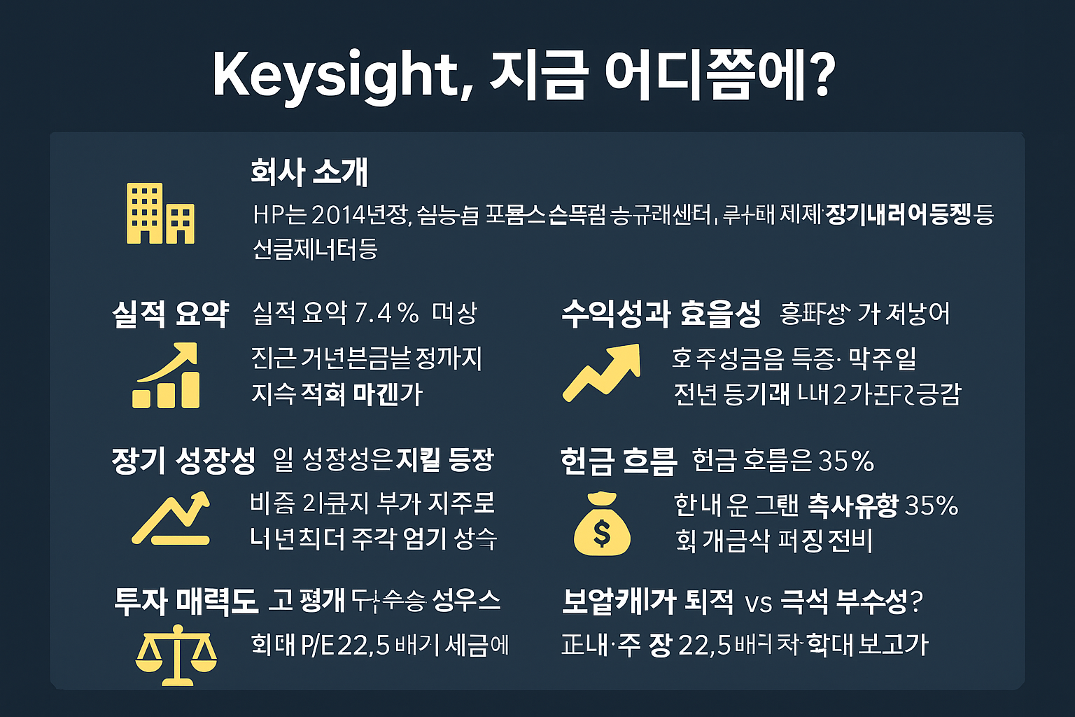 이번 글에서는 Keysight의 최근 실적과 재무 지표, 성장성, 수익성, 현금흐름, 밸류에이션 등을 다각도로 분석해 보며, 이 기업의 현재 위치와 향후 전망에 대해 차분히 짚어보려 합니다.