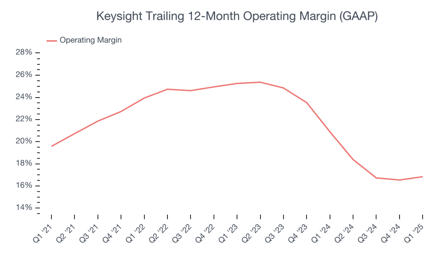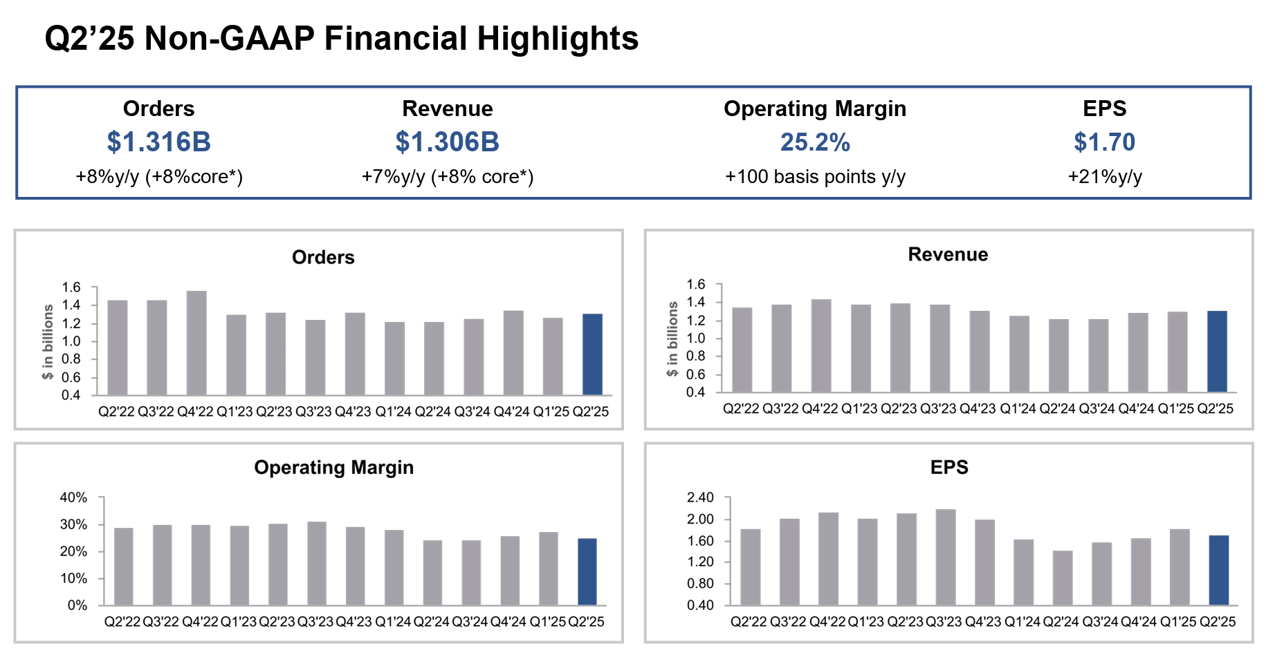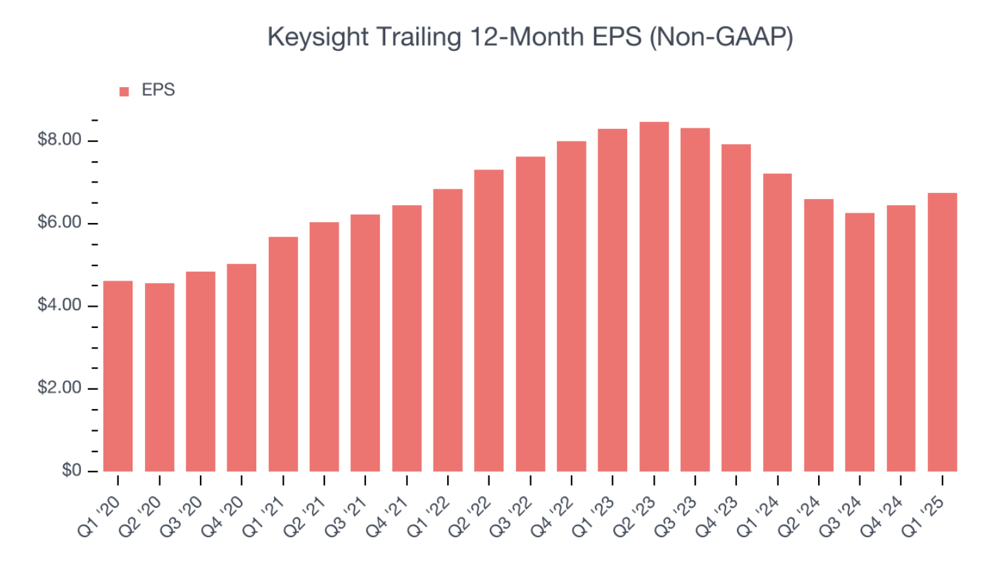 2025년 1분기 실적에서 Keysight는 시장의 기대를 상회하는 성과를 기록했습니다. 매출은 13.1억 달러로 전년 대비 7.4% 성장했으며, 이는 월가 예상치(12.8억 달러)를 1.8% 상회하는 수치입니다. 조정 주당순이익(EPS)은 $1.70으로, 역시 예상치($1.65)를 3.3% 웃돌았습니다.