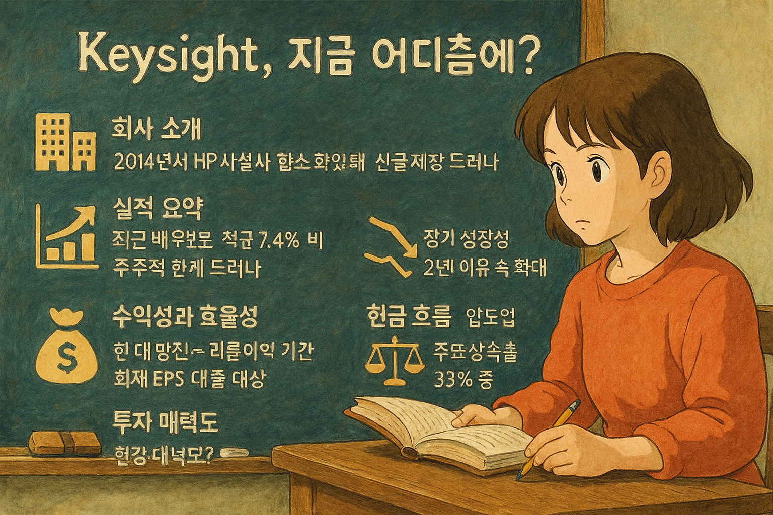 Keysight는 뛰어난 제품 경쟁력과 우수한 현금흐름을 가진 기업입니다. 그러나 최근 몇 년간의 성장 정체, 이익률 하락, 투자 수익률 감소는 구조적 리스크로 작용하고 있습니다. 이번 실적 반등이 단기적인 반짝일지, 혹은 장기적인 턴어라운드의 시작일지는 좀 더 지켜봐야 할 시점입니다.