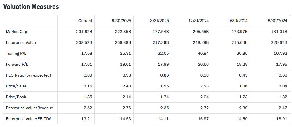 이는 CEO 밥 아이거(Bob Iger) 복귀 이후 진행된 구조조정과 비용 효율화, 그리고 콘텐츠 투자 선별화, 스트리밍 사업의 흑자 전환 선언 덕분입니다. 시장의 시선은 이제 “디즈니가 다시 성장주로 돌아설 수 있을까?”에 쏠려 있습니다. 현재 밸류에이션(Forward P/E 약 17~18배)은 과거 평균(20배 초중반)보다 낮아 리레이팅(가치 재평가) 여지를 남겨두고 있습니다.
