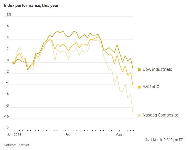 미국 증시가 흔들리는 가장 큰 원인 중 하나는 경기 둔화 우려입니다. 트럼프 전 대통령이 올해 경기 침체 가능성을 배제하지 않겠다고 언급하면서 시장은 더욱 불안정한 모습을 보였습니다.