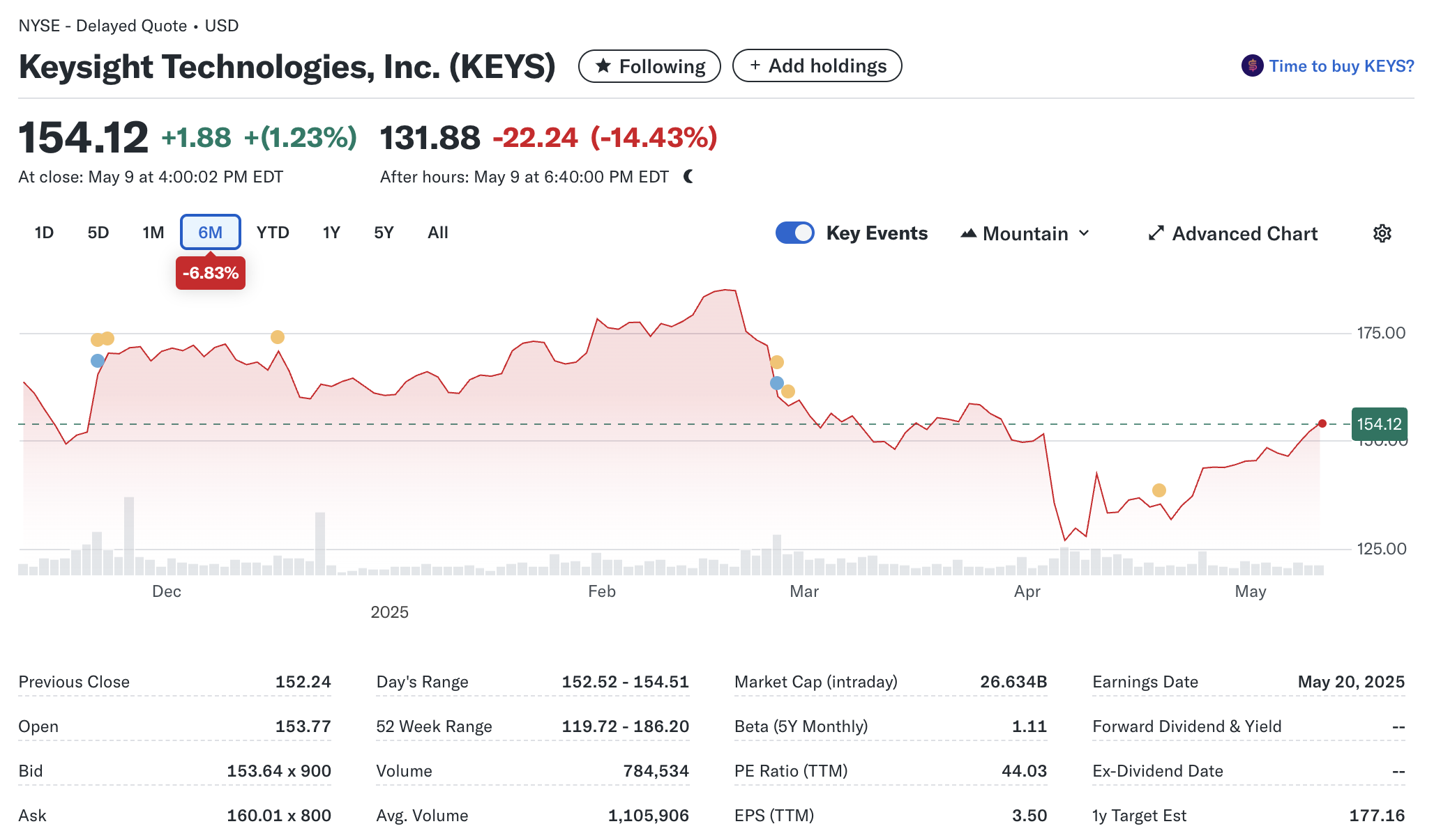 2024년 하반기 이후, 글로벌 주식시장은 도널드 트럼프의 대선 승리와 함께 불확실성이 커졌습니다. S&P 500 지수는 지난 6개월간 약 9.9% 하락했지만, 그보다 더 깊은 낙폭을 보인 종목들이 있습니다. 대표적인 예가 **Keysight Technologies(NYSE: KEYS)**입니다. 같은 기간 17% 하락하며 시장 평균보다 더 부진한 성과를 기록했습니다.