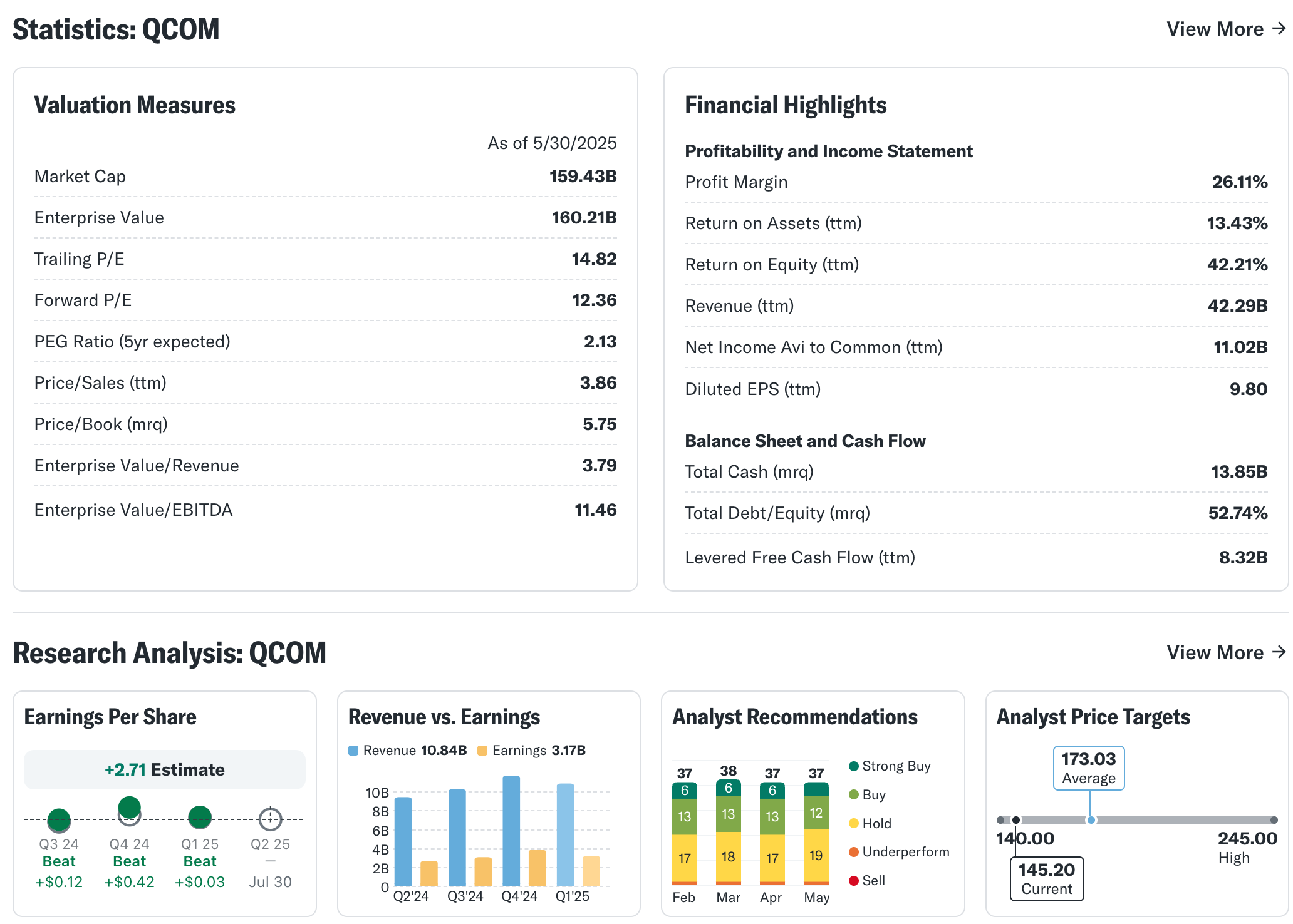 재무적으로도 충분한 뒷받침이 있습니다. 2분기 기준 퀄컴은 70억 달러 이상의 현금 및 현금성 자산, 그리고 강력한 현금창출 능력을 보유하고 있으며, 이는 M&A와 같은 전략적 투자를 병행하면서도 자사주 매입과 배당을 동시에 수행할 수 있는 여유를 제공합니다.