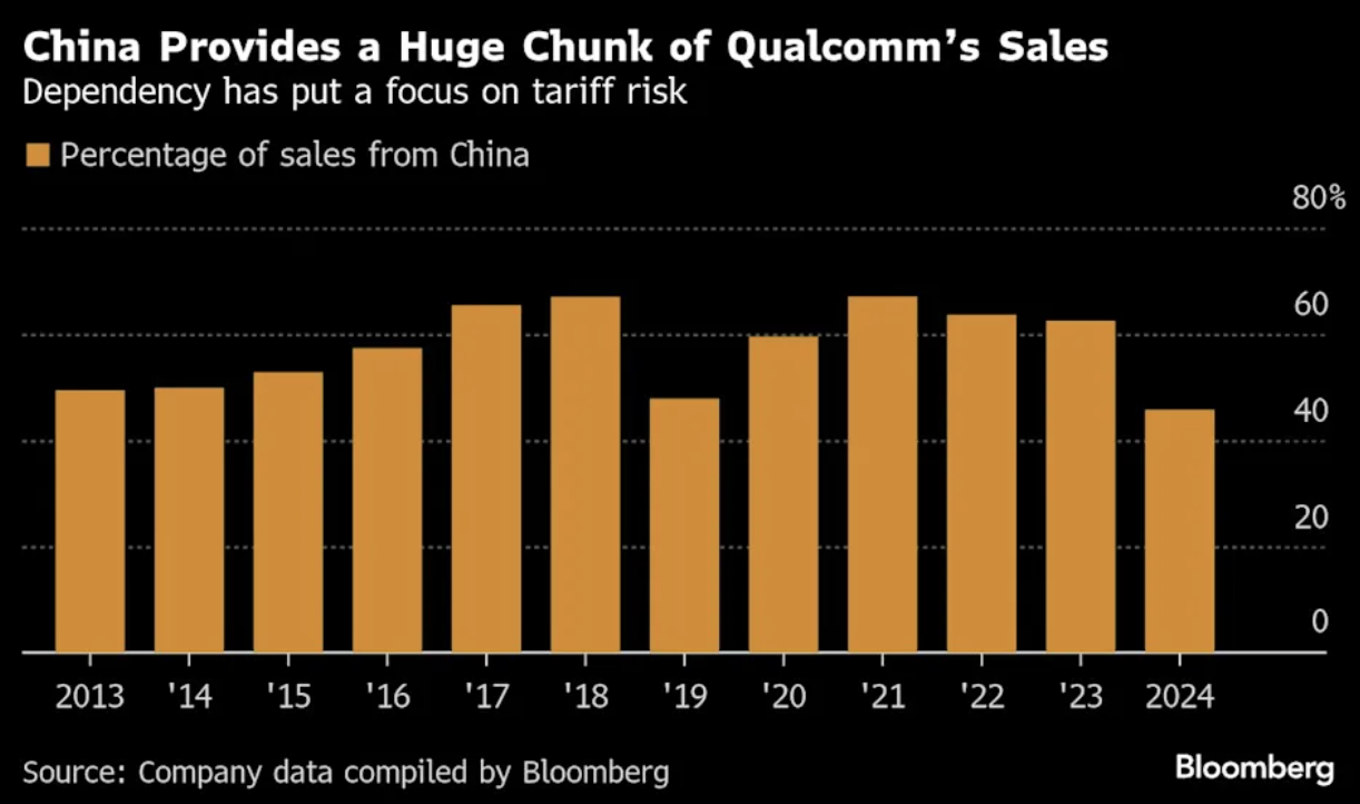 퀄컴 전체 매출의 약 46%가 중국 시장에서 발생하고 있으며, 이는 대부분 중국 스마트폰 제조사에 공급되는 반도체입니다. 하지만 미중 간 긴장이 고조되고, 중국 내 소비 둔화 및 화웨이 등 국산 반도체 자립 움직임이 강화되면서 퀄컴의 중장기 수요 전망에 불확실성이 커지고 있습니다.